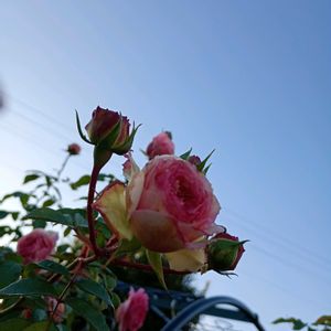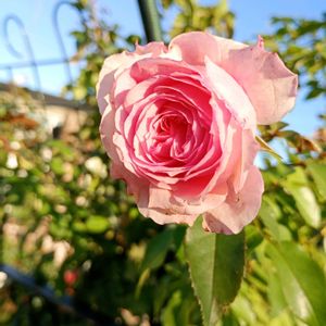 お早うございます🥰 今朝は蒸し暑くてお風呂に入っているみたいです🥵 小さい鉢植えの薔薇を持ち上げたら水やる前なのに案外重たくて…水吸ってないのかな😣でも滞留すると水が腐るのでザバザバあげてしまいました。何が正解なのか…😓 アミロマンティカが少し傷んでいますが綺麗に咲いています。 プロの方が推薦されるだけのことはありますね😻💓 香りもふんわり香ってくるし言うことないです🥰💕 アーチに植えました。対面はダフネちゃん💓この子も頑張ってますね😻 去年秋にお迎えして冬越し成功したジュズサンゴさんが大きくなってきました😻💓 最後はブルーグラビティ…🩵 スッキリとしたお花で涼しげです🥰 スリップスも暑すぎて動きが鈍いのか︙被害が少なくなってきています☺️