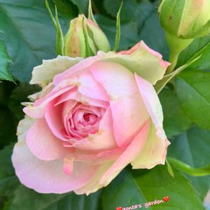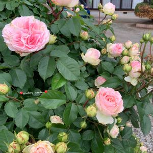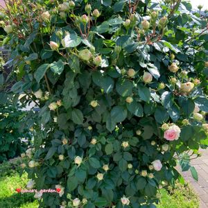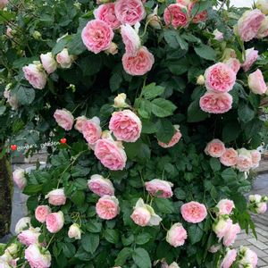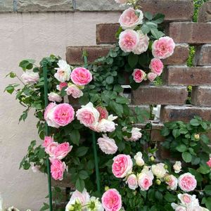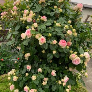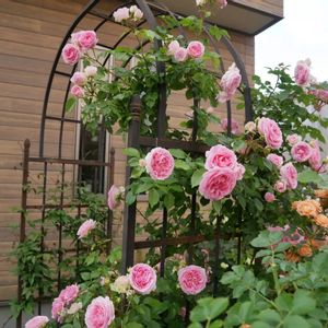 庭の薔薇、 今日のアップはアミロマンティカです。 ピンクの花がたくさん咲いて アーチを半分まで 埋めれるようになりました❣️