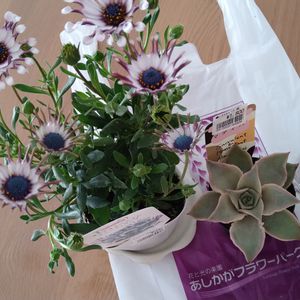 あしかがフラワーパークに行ってきました🚗 オステオスペルマムとマディバと髪の様にイタリアンライグラスが育つ「ちゃっぷんのび太郎」を買ってきました🐸 のび太郎さんは👧がお世話します。👶も気になっています🖕