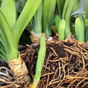 ずーーっと気になっていた君子蘭の植え替えをしました。 根がぎっしり😣 16年ほど前に住んでたとこの、前の住人からの置土産なのですが(2−3株だったかな🙄)、少しずつ増え今は子株も入れたら22株。 16株はなんとか植え替えできたけど、あと6株。。。腰痛いけど、今からプランター買いに行きます💪