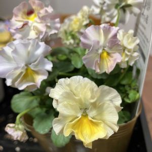 2025.03.09 秋蒔き種からパンビオ 多分、今咲いているのはビオラたち? パンビオミックスの種を国華園さんから買ったり、フリルのビオラを農家さんの直売でお迎えしたり、あちこちからお迎えして。 気付いたらパンビオにハマって4年目。 まとまって3月にこれだけ咲いたのも嬉しい。 いや、まとまってないか😅 でも嬉しい☺️ このあともどんな子が花を見せてくれるのか楽しみ。 種をとっておいて、また秋にまきまくろう。最近リース型プランター買ったから、今年の冬は苗作って屋内で楽しめるぜ🤩