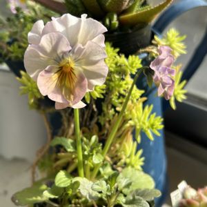 明けましておめでとうございます🎍 今年もよろしくお願いします(๑˃̵ᴗ˂̵)♡ pic1 ビオラの“華あられ“とパンジー“ペルクレア”がようやく咲き揃いました✨ 後方のネメシアはただ今切り戻し中✂️ pic2 ←華あられ お迎えした時は淡いブルーでしたがいつの間にかピンクに色変わり →ペルクレア しばらく寒さで縮こまっていました。 ようやく咲き始めた〜♡って感じです。