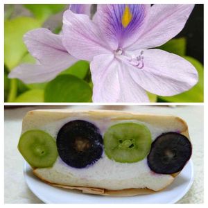 こんにちゎ🐱 昨日のですが💜 ホテイアオイさん 夏前に姫アオイってのが 売ってて小さくてメダカの鉢にピッタリ😻 お花も咲くから一石二鳥とか妄想してたんだけど〰️めちゃ繁殖して牛牛(違う) ギューギュー でも?お花ゎいっこうに咲かない❔❓️❔💧 日当たり足りないのかな❔💧 と➰試しに1鉢だけ🐱 あうー💜咲いてくれました🎵 でも🙀この場所だとメダカが湯だるかもね💧 娘が買って来てくれた✨ フルーツサンド🍇 お揃いみたい💚💜 に 見えないかな❔🎶(笑)