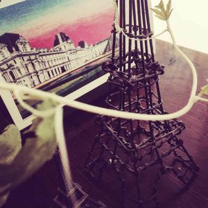 きゃー!Parisの街に巨大ゴーヤ現る! エヘ、水栽培のゴーヤちゃんがエッフェル塔に巻きついた、ウチの窓辺のショットでした!
