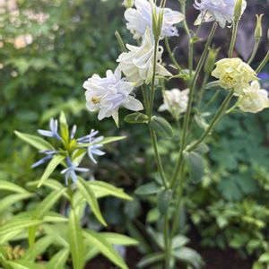 オダマキ タワーライトブルー 儚げな佇まいでとても素敵です🍀 背後の青いお花は丁子草