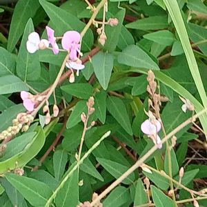 🌿アレチヌスビトハギ🌿 🌿(荒地盗人萩)🌿 別名:迷惑なひっつき虫🐝🐛🦗 科属名:マメ科・ヌスビトハギ属 花言葉💘略奪愛 🌿アレチヌスビトハギ(荒地盗人萩)という名前の由来は、 実の形が盗人の忍び足の足跡に似ているからという説や、実が知らない間に服などにくっつくのが盗人ぽいからという説があります。🌿 ヌスビトハギという在来植物があります。 アレチヌスビトハギはヌスビトハギによく似た北アメリカ原産の 外来植物です。 ヌスビトハギは半日陰~日陰の自然度の高い場所に生育しますが、 アレチヌスビトハギは名前の通り日当たりの良い荒地に生育します。 花は花期 の間 、次々と咲き、花は3~6節にくびれた 扁平な果実となります。 果実の表面には カギ状の細毛が密生しており、 くびれた節の部分で 容易に折れて 、動物の毛や人間の衣服に付着して運ばれる、いわゆる🕷️『ひっつきむし』🐛です。