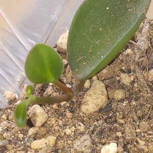 ペペロミア・ホープさんの葉挿しベビーちゃん😻💚💚 御母堂様は40cm近く伸びて 最早カーテンです😸❇️ そのカーテンから1枚落ちてた葉っぱちゃんを 土に置いてたら 芽が出てました😽🌱 落ちた葉っぱちゃんは大抵枯れてるので芽が出ないのですが 処分する前に一応植えて魅るという 転んでも何か拾って起き上がるガメツイ性格が幸いして もう一株Get出来そうです😸💧💧💧