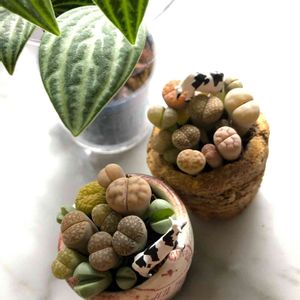 おはようございます😊 またまた、リトープスさんをお迎え🍄 あとはハイドロカルチャーのペペロミアさんも💕 おチビさんだから場所とらないよねー😁って 自分に言い訳💦 少〜しだけお日様☀️が出てきて 植物たち🪴が喜んでる💗