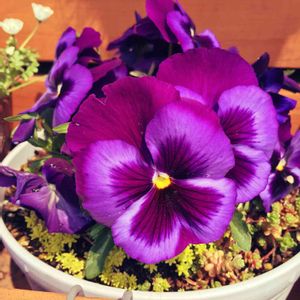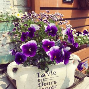 ビオラちゃん 白のポットにムラサキが映える^_^ 可愛く咲き誇ってます♡