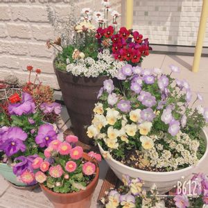 うちの玄関♡花盛り〜! もりもり寄せ植え