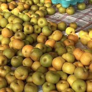これなぁんだ🍏 わが町の川向こう、稲城市の梨がはじまりました 最初に並ぶのはその名も「稲城」、8月の終わり頃から数週間だけ地元でしか出回らない とっても大きくて甘い品種 知人に送る分、まわりに配る分、いくつかな 暑くてもこのためにならせっせと出向くのです #稲城の梨 #なしのすけ #となり町自慢