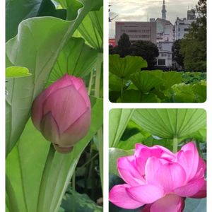 上野公園、不忍池。 2枚目💕 蕾も素敵。ちょっと拡大😍 遠くにスカイツリー。 青空だったらなあ💙