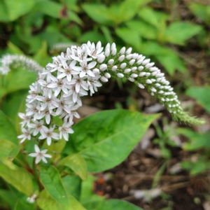 オカトラノオ サクラソウ科オカトラノオ属 多年草 北海道〜九州に分布 平地から低い山地の日当たりの良い草地や道端に見られる。 茎の先端に長さ15cm前後の花穂をつけ、多数の花を咲かせる。 花穂は途中で横向きに曲がっているのが特徴。 地下に細長い地下茎が多数あり、これを伸ばして増えるので群生する。 花期6〜7月