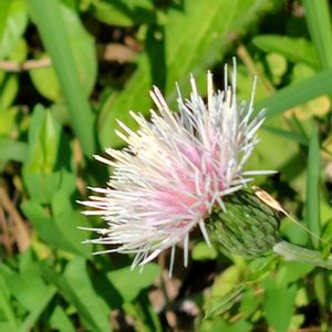 シロバナノアザミ キク科アザミ属 多年草 ノアザミの白花品種 本州、四国、九州に分布 山野、道端などに生える。 草丈60〜100cm 頭花は直立し、総苞はほぼ球形で、花径2cm程度の白色の花を付ける。 花言葉は「自立心」「ひとり立ち」 もう終わりかけで、冠毛になっているものがほとんどでした。
