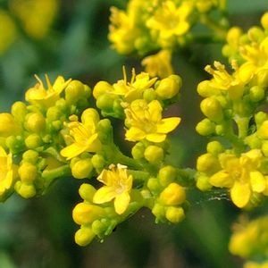 オミナエシ オミナエシ科オミナエシ属 多年草 秋の七草の1つである。 別名は敗醤(はいしょう) 和名の由来は、姿がよく似ている白花のオトコエシ(男郎花)に対する「女郎花」で、全体に優しい感じがするところから名付けられた。 別名の敗醤は、花を室内に挿しておくと、やがて醤油の腐敗したような匂いになっていくことに由来する。 北海道〜九州に分布。 日当たりの良い草地や林縁に自生している。 花期8〜10月 草丈は60〜100cm 茎の上部が分枝して、花茎の先端に黄色い小花を平らな散房状に多数の花を咲かせる。 花径は3〜4mmほどの合弁花で、花冠は5裂する。雄しべは4個、雌しべは1個。 🏷️日曜ビタミンカラー♪ に参加させていただきます。