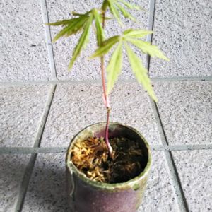 朝方曇から雨☔️見計らい「小鉢の紅葉」🤳撮りました。昨年秋に用土交換、石と根と根本を固定していたアルミ線を今取りました。鉢はリサイクル♻️購入品です😃