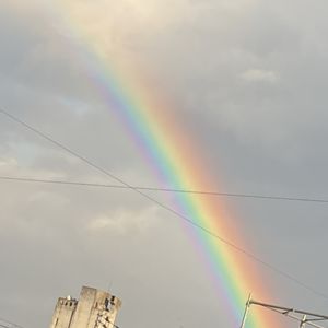 《場外乱闘🌈》 ・とっても濃い色の 虹🌈 ⇨ 今日の午後二時ごろに😇 めっちゃ色の濃い虹が見えて 作業場は騒然…picしましたです。 ⇨ スマホの待ち受けに🌈しましたです。 11/ 8(火) 14:20 ----- 🌈 虹とは、簡単にいえば空気中の水滴が太陽光を反射して見える現象で、光が空気中の水滴に屈折して入り、水滴の中で一回反射して、さらに屈折して水滴から出ていった時に現れます。 この時、光は波長によって屈折率が異なるので、「赤、橙(だいだい)、黄、緑、青、藍(あい)、紫」の7色に分かれます。 〔🌈ネット記載引用〕