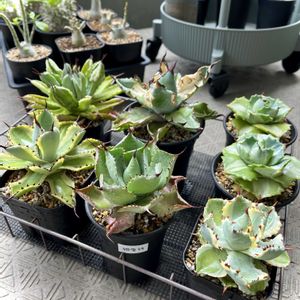 アガベ属 王妃兜蟹錦 ✨️✨️ 可愛く育っているだろ〜! 根っこ死んでるんだぜ〜😀💦 と言うpic🥶 こんなに可愛がってるのに😑 掘り出して良かった! しばらくいたわりま〜す😅👍 ④やらかしたBB💦 🏷かずの王妃兜蟹錦