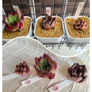 トロピカルガーデンさんから到着! 商品ページに8/30以降発送って書いてたからまだ先だと思ってたら、届きました😸 プレートとブラッドロメオは発根してるから安心🎵 ピンクロメオ✕ギルティは未発根だけどすぐに発根しそうな雰囲気 どれもピンクで可愛い❤️ ジュレさせないように頑張って大きくしよう❗ で、大きくなったらもぎって増やすんだい🍃🍃🍃
