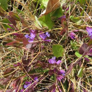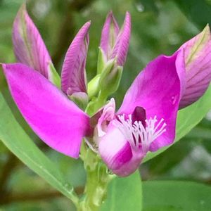 🐕🦺散歩道で 葉は長さ⒈5ー3cmほど、披針形、互生 先端のスモーキーピンクの若い葉?花?が綺麗でした✨→蒴果でした。 〜追記〜 お名前を教えて頂きました。 もろ丸くんさん、ありがとうございました😊 ヒメハギ(姫萩): ヒメハギ科ヒメハギ属 多年草 在来種 花期4-7月 紫色の特徴のある作りの花 蒴果は扁平、翼がある心円形 ハギの花に似ていて、全体が小さいことが名前の由来。