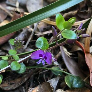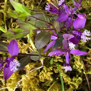 ちょっと色変わりのスミレかと思い近くで見るとなにやら妖しい。🤔 紫色のハチドリ?🤔?( -_・)? はじめてお目にかかるヒメハギさんです。🤗🎵どうぞよろしくね❤️