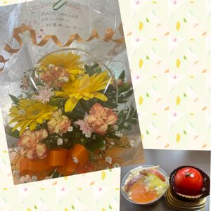 今日も一日お疲れ様でした😊 仕事から帰って玄関を開けたら娘からバースデープレゼントのフラワーアレンジと冷蔵庫の中にリンゴ🍎のスィーツが入っていました🎶 お礼の電話をして孫たちともおしゃべり🎶 孫たちからもママバァバお誕生日おめでとう🎊と言ってもらって一日の疲れも吹き飛びました🤣