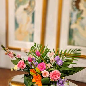 今日のお花 チューリップの入った 春らしいフラワーアレンジメント🌷 ストックの甘い薫りが漂ってきます~❤️ チューリップ、カーネーション、ユリ、 ストック、ガーベラ、 スイートピー、ドラセナ、 アレカヤシ チューリップ🌷満開のウチのお庭の過去picもご一緒に~😃💕