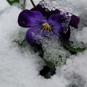 こんにちは👋😃 今朝の我が家 庭パトです⛄ ビオラ💜 ベビーサンローズ❤ アリッサム🤍 ヤブコウジ❤ 思った以上に降った雪⛄ 今はだいぶ消えました"(ノ*>∀<)ノ