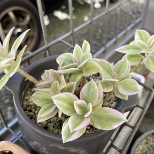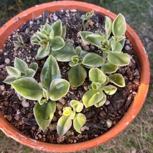 寄せ植えアレンジ 寄せ植えでちょっと空いた隙間に重宝しているのが挿し芽が生き生きと育ってます🫠 ①キリンソウ ②ムラサキゴテン(パープルハート) ③ベビーサンロール 強いアメジストセージとフジバカマ