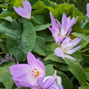 実家の花 イヌサフラン??あちらこちら好きな場所に咲いてます。◕‿◕。 2枚目 多肉ちゃんエケベリアが巨大化( ╹▽╹ ) 3枚目 かわいそうなベビーサンローズさん 1ケ月ぶりの水やり💦 何とか頑張ってくれてました😅