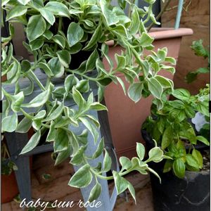 ミセバヤとベビーサンローズ✩.*˚ 毎日水遣りするからか、直射日光当たっても元気😃