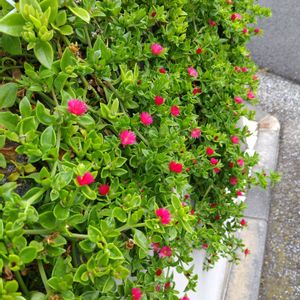 ベビーサンローズ 垂れてきたので少し高い場所に移動させました 一緒の鉢の火祭りが負けてますね🤭💓