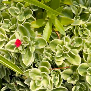 「ベビーサンローズ」 7月10日am10:52頃 ✧p📷qω•,,´)パシャ✧ 8日に投稿の檜扇さんの鉢に入っていたのを、春の土換えの時に別の鉢に移し替えました。 あの頃は寒さにやられて、貧弱でしてけど、今はモリモリに育ってます。😃✌️🎶 斑入りのベビーサンローズもあったのに消えちゃいました。( ˙ト˙ )ドロンッ😭 葉っぱの肉厚の子は、冬場は気を付けないといけないですね。