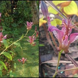タイワンホトトギス ユリ科 我が家のタイワンホトトギス 茎頂に小さな散形花序をだし 2~7個(我が家の🌸)の🌼💐 を咲かす。 普通ホトトギスは葉腋に1個 時に複数の🌸💐を咲かす。 外花披片の元に双瘤🐫に似た小さな膨らむがある。 日本では西表島に自生しているらしい。 ホトトギス投稿したので違うホトトギスも有るので。 日付順無視