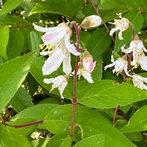 アジサイ科ウツギ属NO2 サラサウツギ ウツギの八重咲の品種。 円錐花序はほぼ直立する 花弁の外側は紅紫色を帯びる 栽培品が多いが逸出するものも有る。