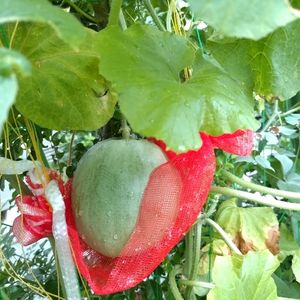 ルピアレッドメロン おはよう御座いますm(_ _)m 自宅のルピアレッドメロンもようやく網目が出来始めました! 受粉不全で形は歪やけど何とかここ迄いけたよ😁 後は収穫した時の味は未知数ですが、本職では無いのでボチボチ良い感じになれば良いな(^_^;)💦
