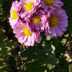 小菊いろいろ キク科キク属 多年草 キクの園芸種群 頭花が直径9cm未満のキク 葉は互生する単葉で、羽状に切れ込みがある。 多くの花形があり、花色も豊富である。 ①我が家の小菊 ほったらかしでも、毎年咲いてくれます。うっすらピンク色に色付いています。 ②散歩コースで見かけた小菊 さまざまな色と形があり、散歩の足取りも軽く、楽しませてくれます。
