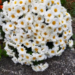 花盛りのキクで、庭が にぎわっています🎶 🧡🩷❤️💚🤍