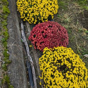 こんにちは 今の花壇は 菊が見頃を迎えています 一枚目は 柔らかいピンク色に 変わった今の姿です 変わらない正面の庭の片隅で クチナシの実を見つけました 風が冷たい1日でした 皆さんも 体調崩さないように(ღ′◡︎‵)
