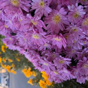 コギク(小菊)の花言葉:「純情」「真実」「元気」 菊全般の花言葉∶「高貴」「高尚」「高潔」 キク科キク属🌿耐寒性多年草 キクは菊の音読みで1年の最後に咲くことから究極•最終•極まるの意味から名付けられた。直径9cm以下を小菊と呼ぶらしい。