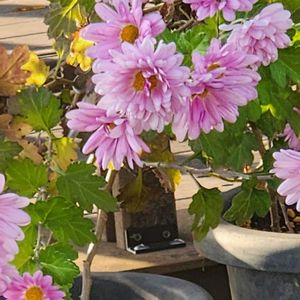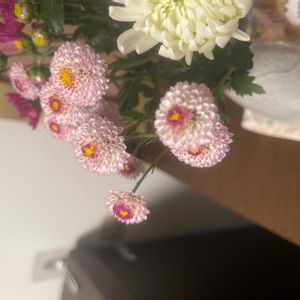 同時期に咲き始めた菊さん ①一重の足摺野路菊 ②八重の小菊 ③白のミズヒキ(水差し中)