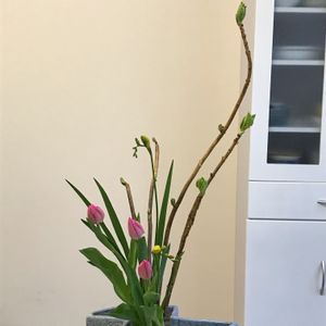 後れ馳せながらあけましておめでとうございます。 GSで初めてのお正月を迎えました。今年もいろんな方の画像を拝見するのを楽しみにしております。よろしくお願いいたします。 この年末は忙しくて、お稽古でいけた花材だけで盛り花をしました。假屋崎さんみたいにもっと華やかにモリモリにしたいものでしたが、お花を買いに行く暇がなく( ´д`) 今年も無理せずちょこちょこお花を楽しんでいきたいと思います。