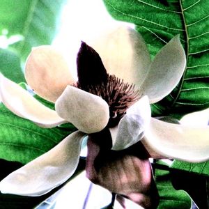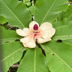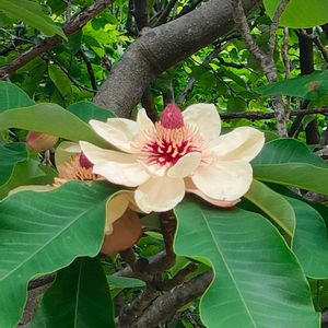 初めて見る花です 調べてみたらホオノキが近いかと思いますがどうでしょうか🤔 家のすぐ近くに咲いてるのが何か不思議な気持ちします