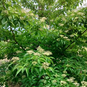 クマノミズキ ミズキ科 ミズキ属 ミズキの花の時期が過ぎて今はクマノミズキの大木があちらこちらで細長く対生する葉に黄白色の花をたくさん咲かせています