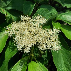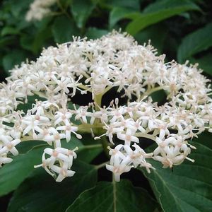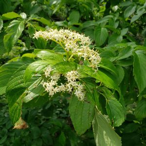 ク マ ノ ミ ズ キ (熊野水木) ミズキ科の落葉高木。 日本🇯🇵の 近畿地方以西から 四国、九州に 分布します。山地の林内や 日当たりの良い緩やかな傾斜地などに生えます。 ミズキ(水木)より 1ヶ月ほど遅くに(6月~7月)、枝先に 散房花序の小さな 黄白色の花🌼を咲かせます。 ミズキ(水木)に 良く似ていますが、葉🌿が 卵状長楕円形で やや細く、先端が短く尖って対生することで 見分けます。 🏷白い水曜日♡ 🏷ちっちゃいものクラブ