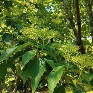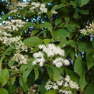 撮影場所:千葉県印西市 樹種:クマノミズキ ミズキによく似ていますが、葉が互生してミズキより1ヶ月ほど遅れて開花します。