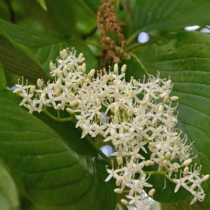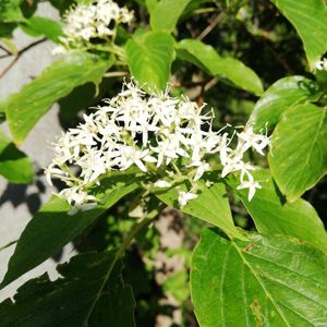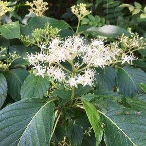 葉が対生だから、たぶんクマノミズキ 近所の山で咲いていました。