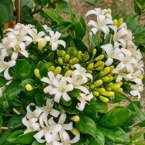 こんにちは!(^_-)-☆ シルクジャスミン❀ 昨日は2輪咲いてましたが今朝にはいっぱい🤩 小さなツブツブ花芽も楽しみですー!🎶🎶 花径もいつもより大きめです〜!😃