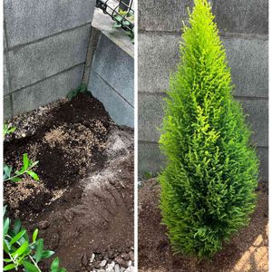 引越し先は、南側コンクリート塀の角 西陽がガンガン 大きく育てよー 西陽から小さい植物を守ってね‼︎‼︎‼︎