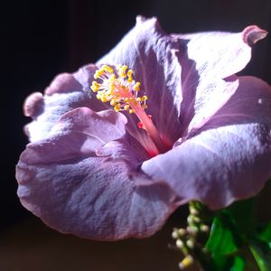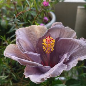 🌺ハイビスカス🌺ケイト🌺 夏のイメージだけど 暑さが苦手と聞いてました 寒い今朝も花が咲いた ブルーの花は どちらかと言うと ほぼピンク☺️